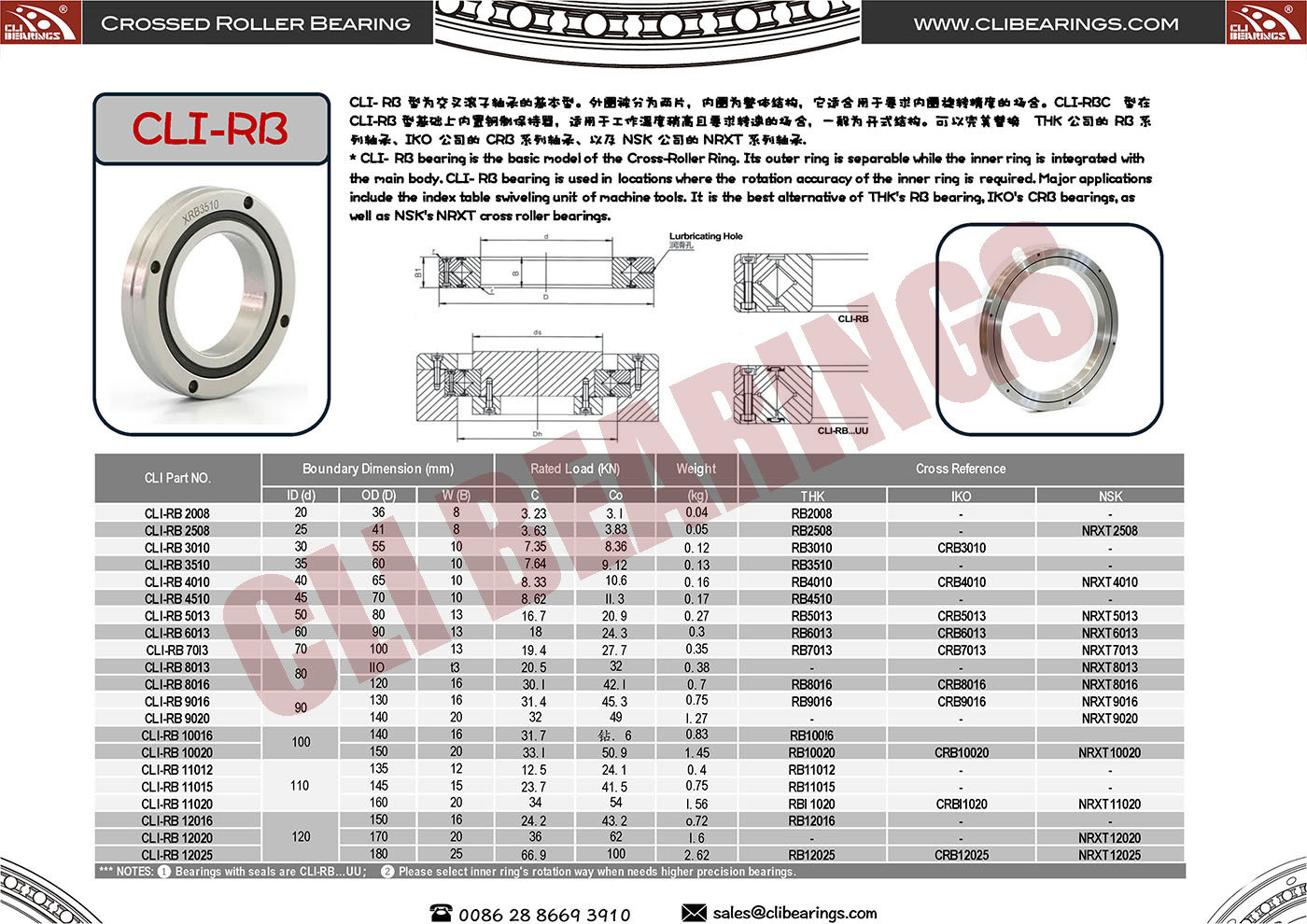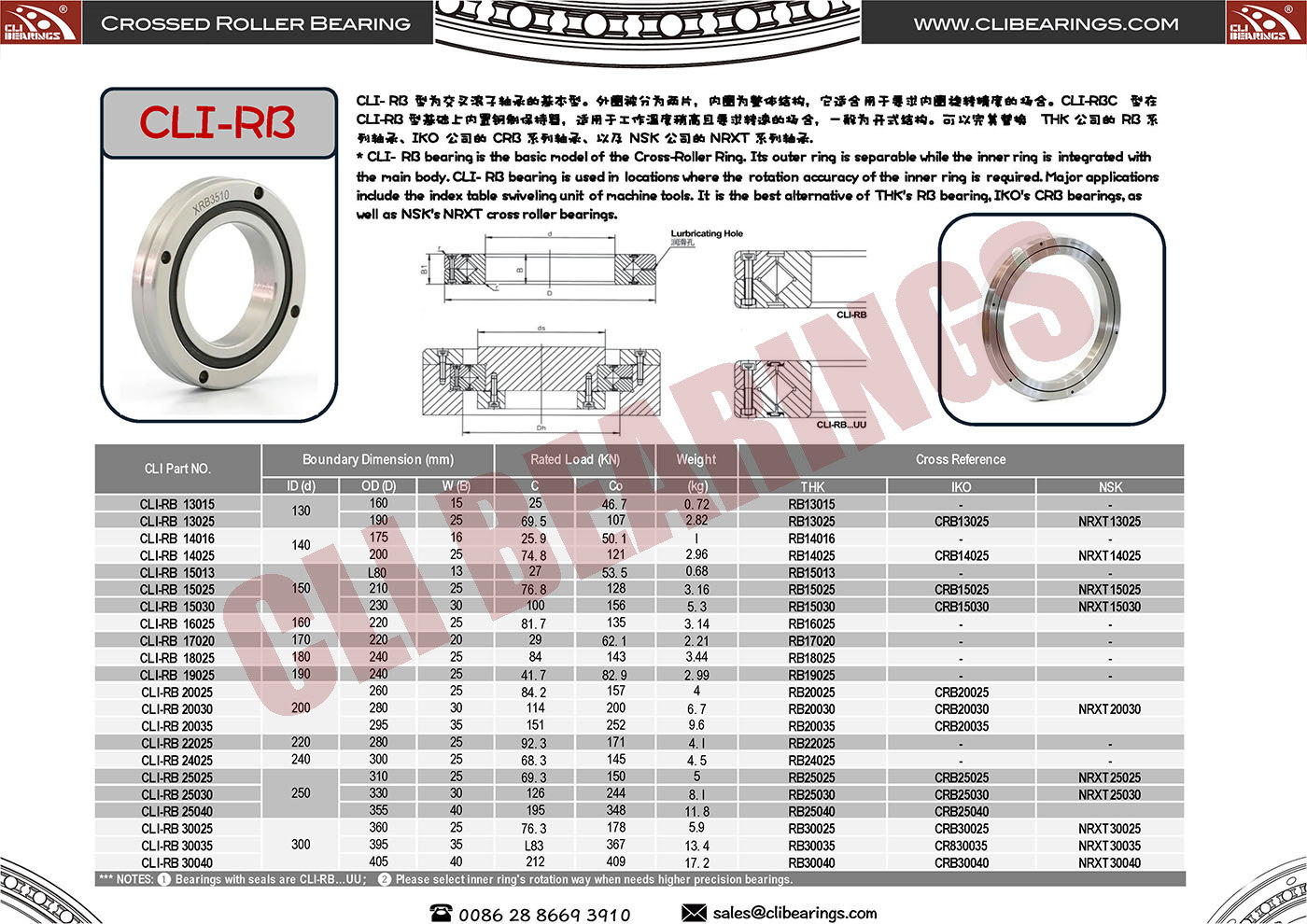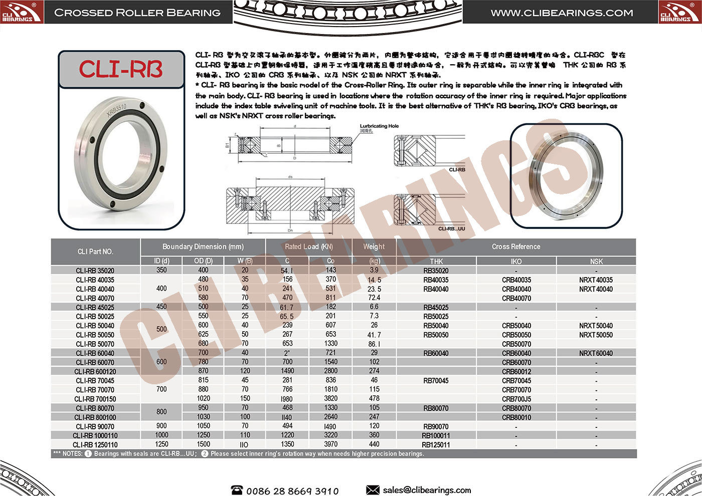 THK crossed roller bearings, RB35020, RB40035, RB40040, RB45025, RB50025, RB50040, RB50050, RB60040, RB70045, RB80070, RB90070, RB100011, RB125011,