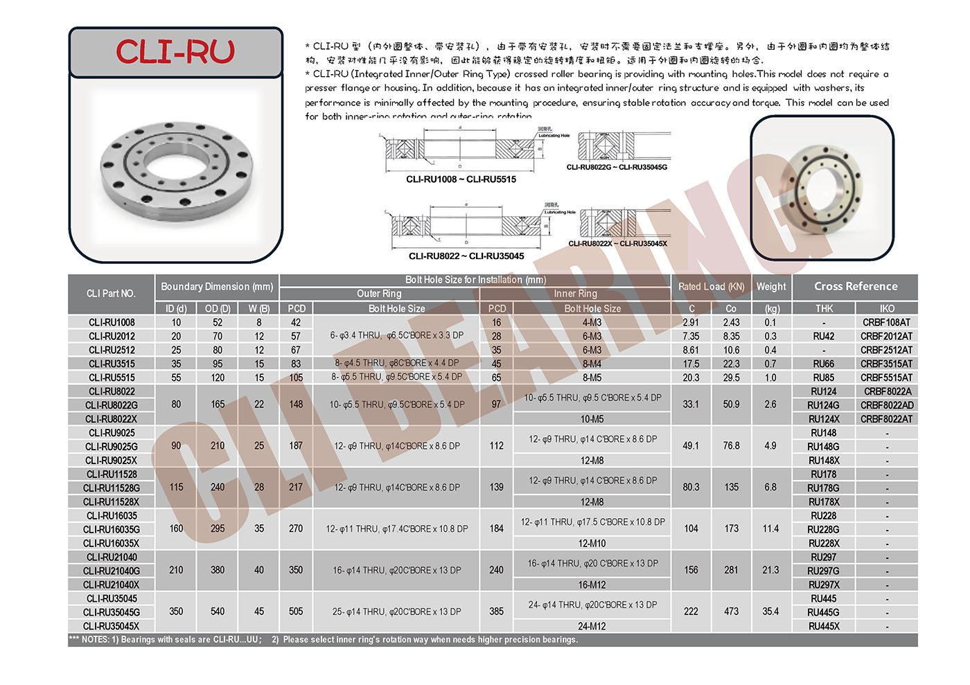 CLI- RU crossed roller bearing is same with THK RU crossed roller bearing and IKO CRBF crossed roller bearing. |