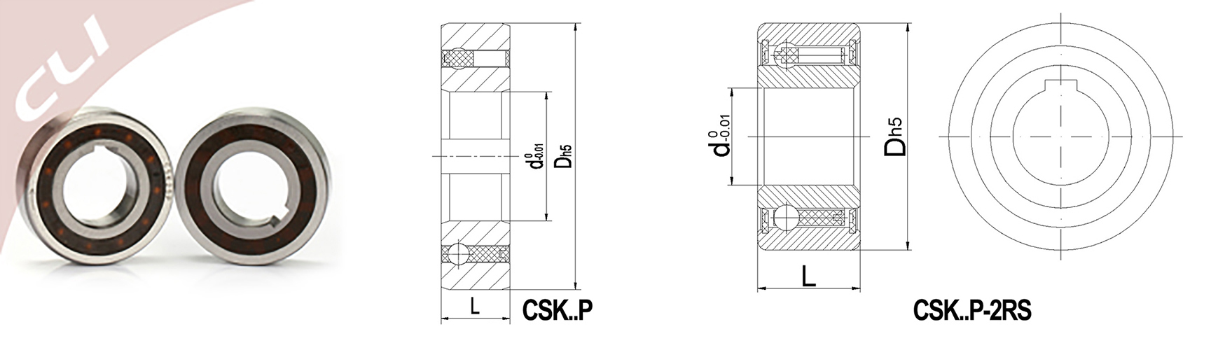 * Notes: CSK =Sprag Keyway Type One Way Clutch Bearing, 2RS =Two Rubber Seals, P =with a Keyway