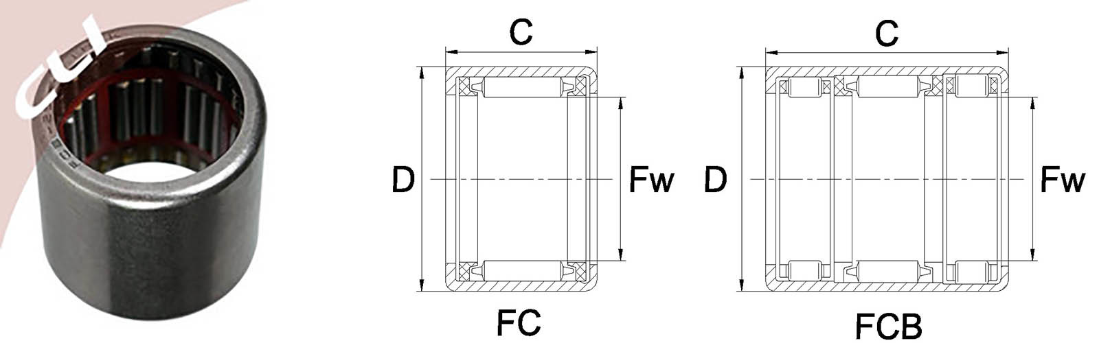 FCB One-Way Clutch Bearings, One-Way Needle-Roller Bearing Clutches, METRIC Sizes |