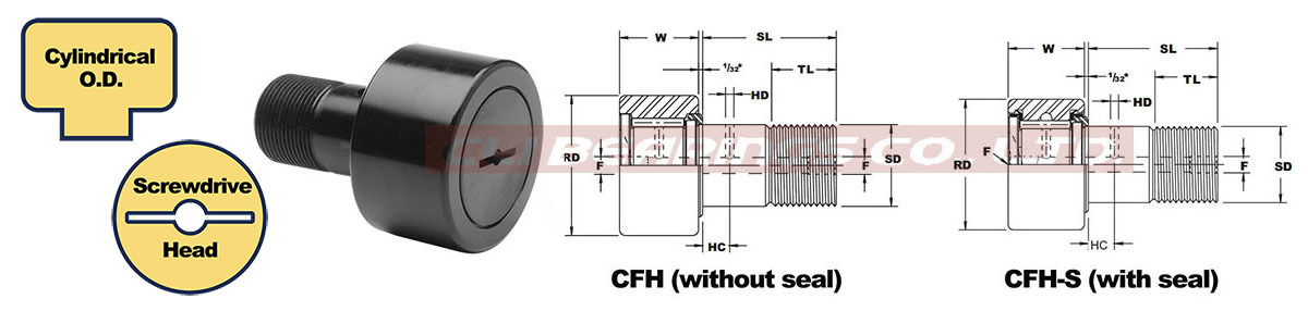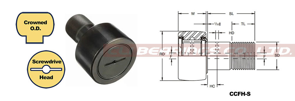 Heavy Duty Cam Stud Follower CCFH-S with Crowned OD & Seals, Screwdrive Head inch size )