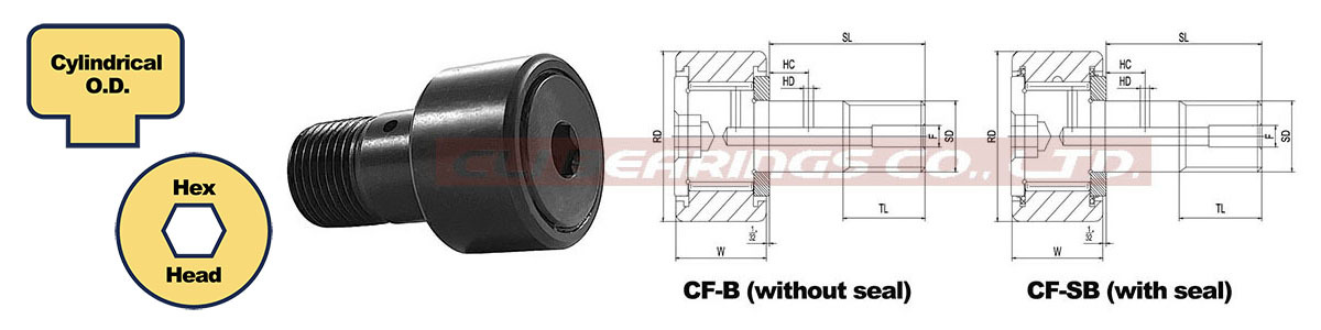 Heavy Stud CFH-B & CFH-SB Cam followers with Hex Hole inch size )