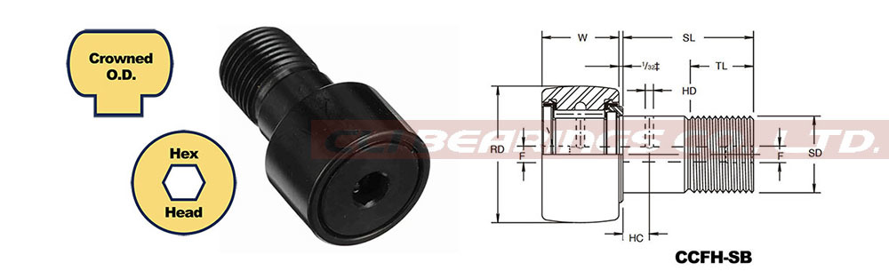 Heavy Duty Cam Stud Follower CCFH-SB with Crowned OD , Seals & Hex Hole inch size )