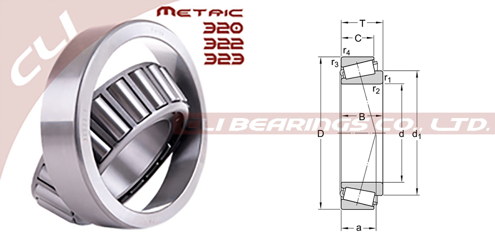 320 / 322 / 323 series Tapered Roller Bearings, Separable Cup & Cone, CHROME STEEL AISI52100, METRIC sizes |