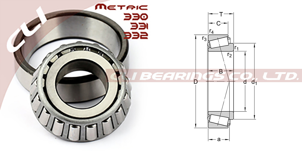 330 / 331 / 332 series Tapered Roller Bearings, Separable Cup & Cone, CHROME STEEL AISI52100, METRIC sizes |