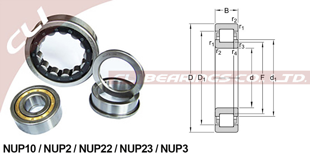 * NUP - Two solid ribs on the outer ring, a solid rib on the inner ring and a loose rib washer make possible the use as a locating bearing and an axial guidance in both directions.