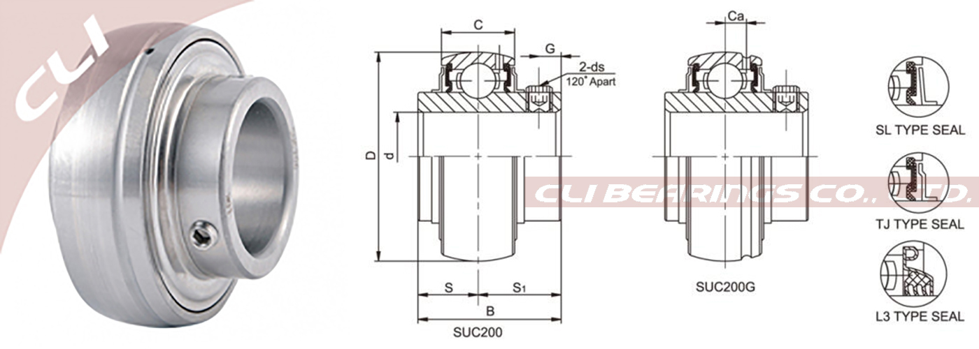 The SUC2, SUC2...L3 ball bearing insert can be ordered with a triple lip seal by using a suffix L3 or R3 as designation, eg: SUC201L3 or SUC201R3. |
