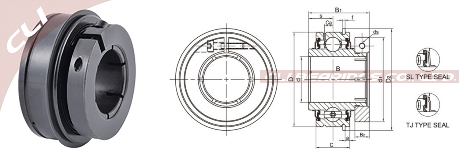 Chrome Steel Bearing Insert, Cylindrical Outer Ring & Snap Ring, Concentric Locking,