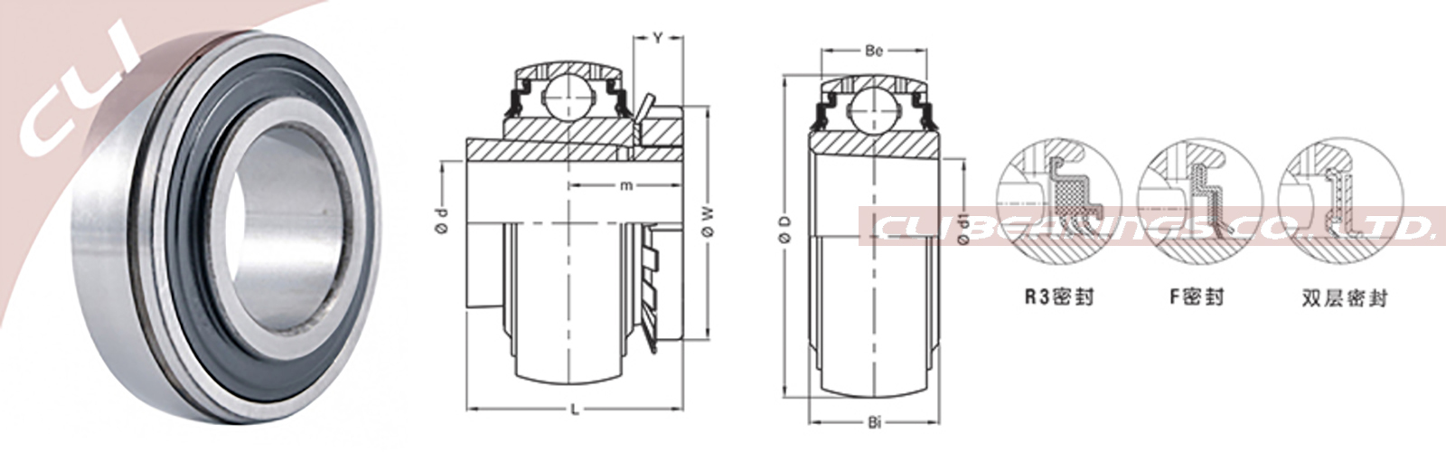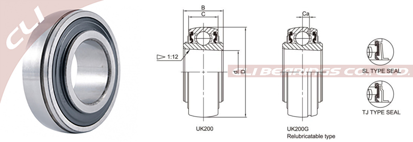 UK2 and UK3 types ball bearings are assembled into the various housings with adapter mounted. They are suitable to the long shaft or to the place where the shaft diameter precision is uneven. Since it is provided with the complete dust-proof mechanism, the bearing sevice life is surprisingly long.