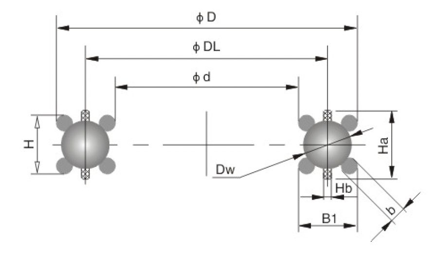 | DL | Dw (ø) | b (ø) | d | D | H | B1 | Ha | Hb |