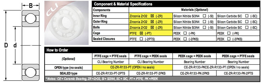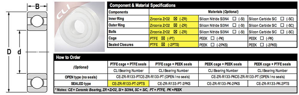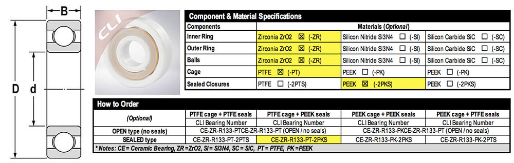 • Sealed type Zirconia ZrO2 Ceramic Ball Bearings can be closured by PEFE or PEEK covers to protect the inside rolling races and rolling elements